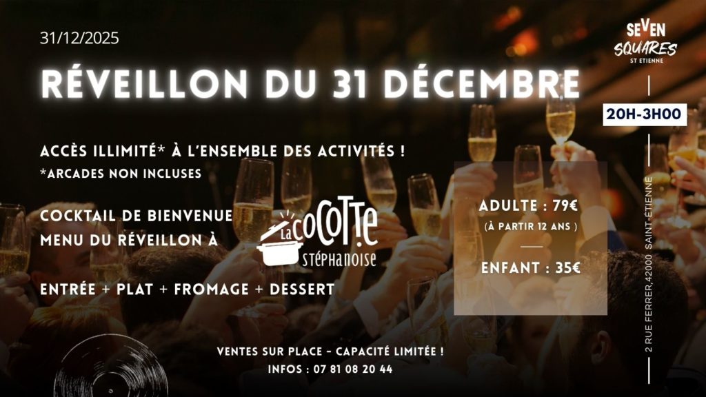 Un réveillon gourmand à La Cocotte Stéphanoise, avec en bonus toutes les activités Seven Squares en illimité jusqu’à 3h du matin !